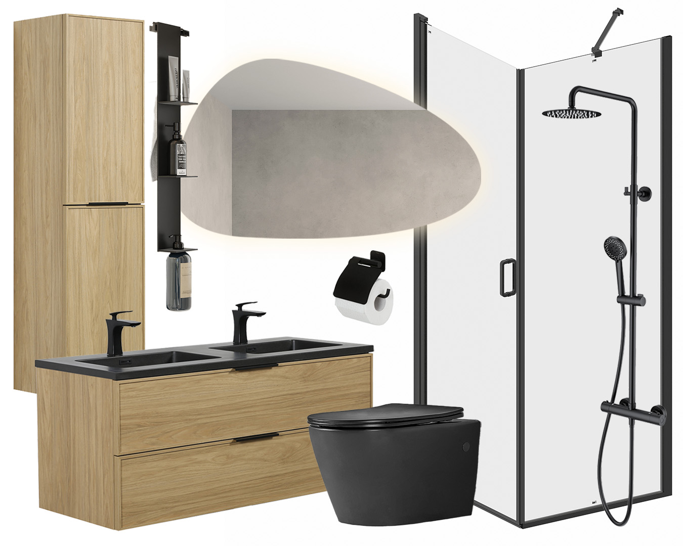 Denne komplette møbelpakken inkluderer servantskap med sort