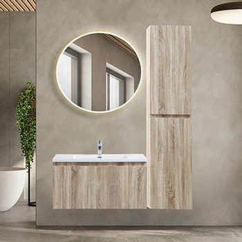 Badnor Melin servantskap er tilgjengelig i breddene 70cm, 80cm, 100cm, 140cm og 160cm. Høyskap i samme serie gir deg en rekke kombinasjoner og muligheter til å skape en god oppbevaringsløsning for ditt baderom.
