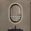 Badnor Sandra ovalt baderomspeil (50x80cm) med sort ramme, LED-belysning og glasshylle